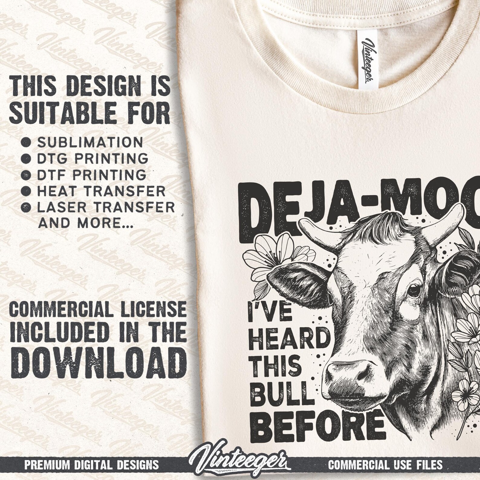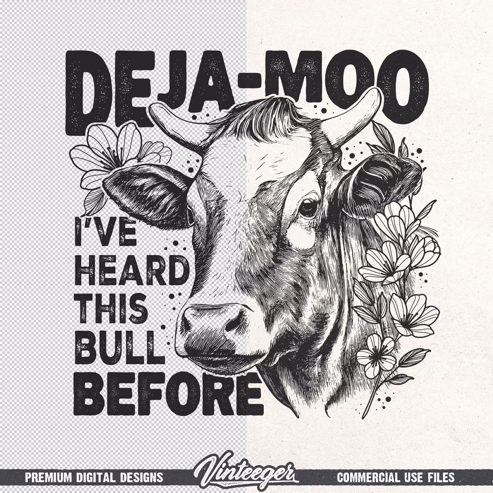 Deja-moo I’ve heard this bull before Png | Funny shirt design Png | Cow design Png | funny quote Png | Western shirt print | Cow sublimation