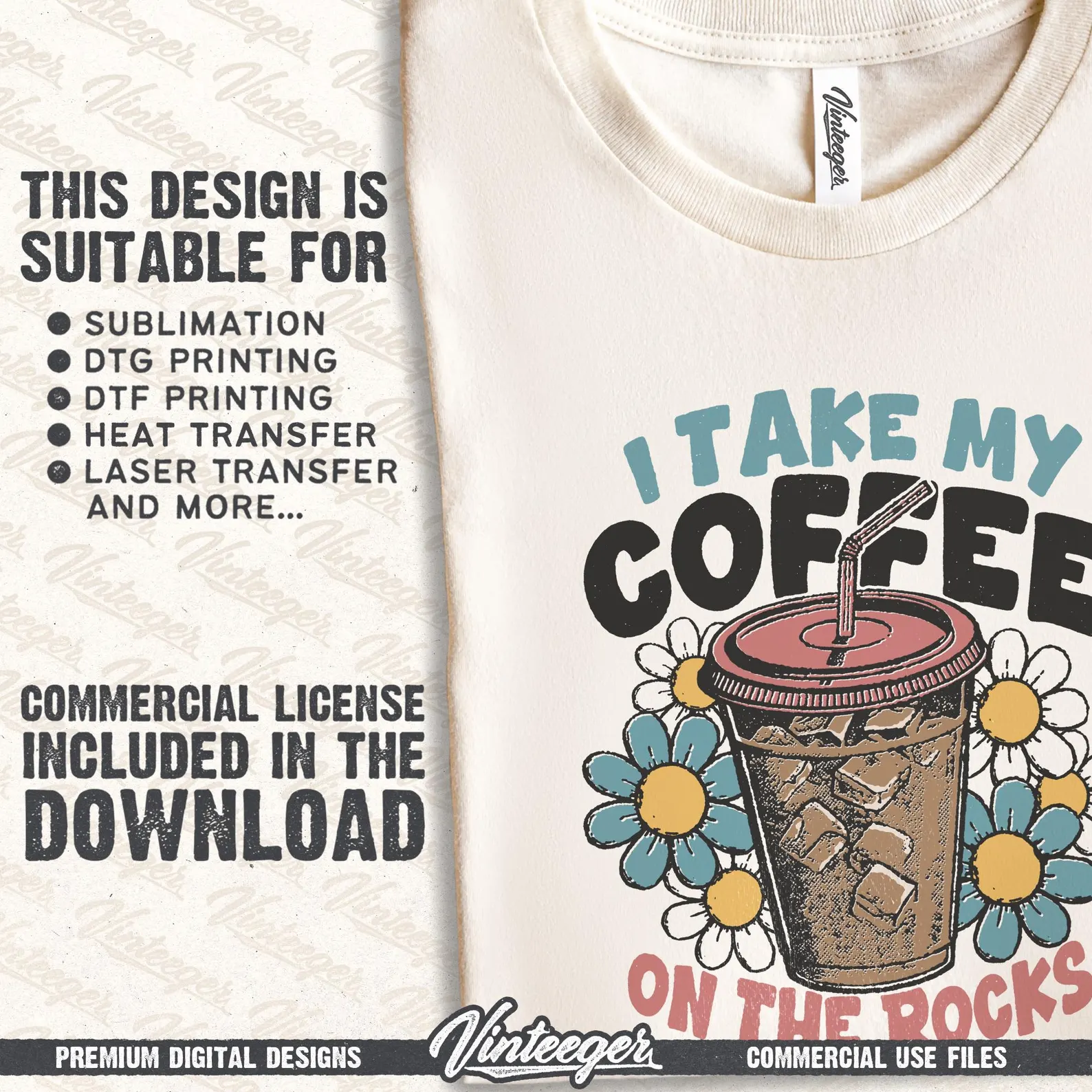 This coffee digital design is perfect for bringing a retro touch to your creative projects. Whether you’re designing for your print-on-demand shop, crafting t-shirts, apparel, or exploring DTG printing, heat transfers, DTF, sublimation, and more, this versatile artwork has you covered. It’s ideal for stickers, t-shirts, posters, art prints, wall decor, tumblers and countless other physical products. Use this design to add some coffee lover vibe to your next party, vacation, event or just for fun!