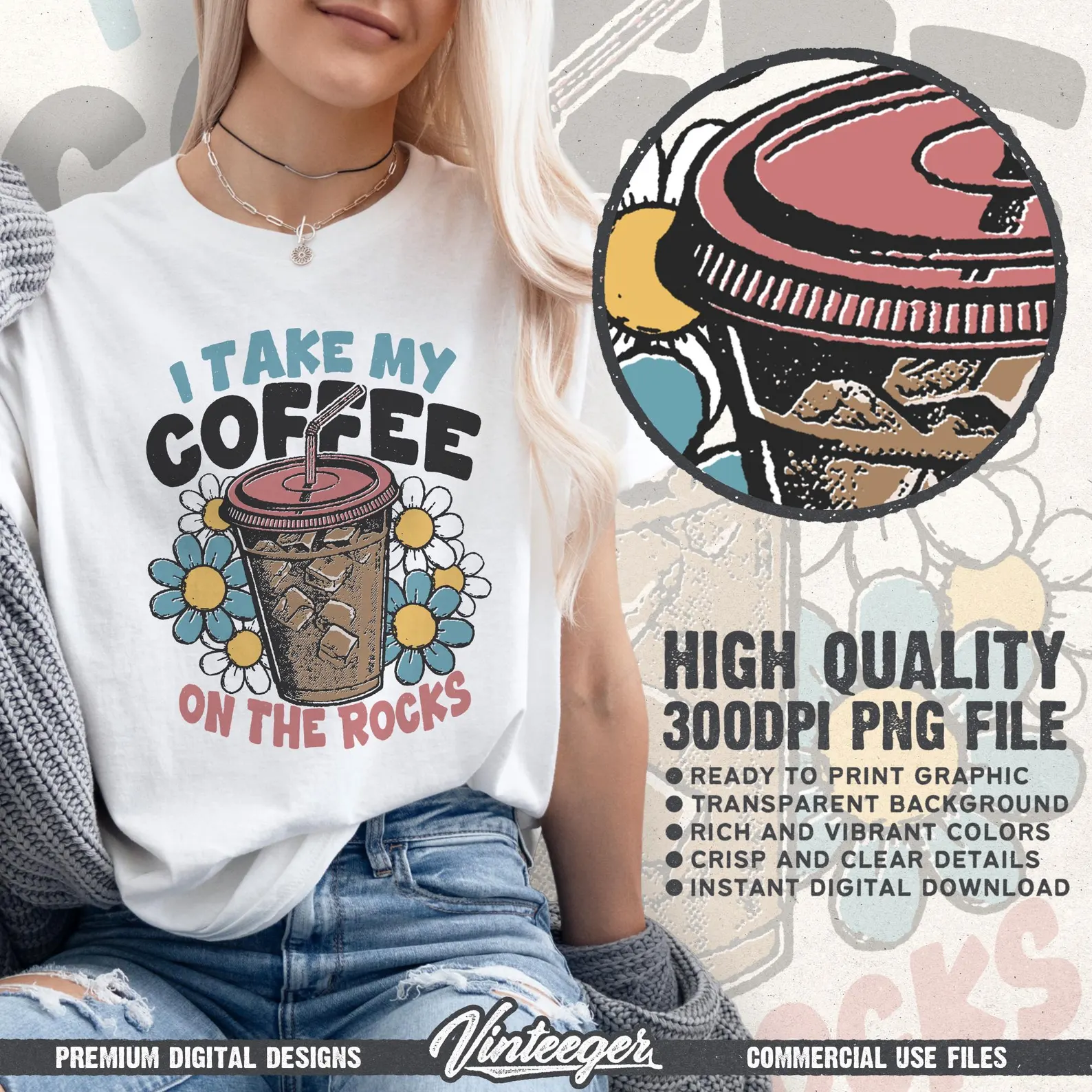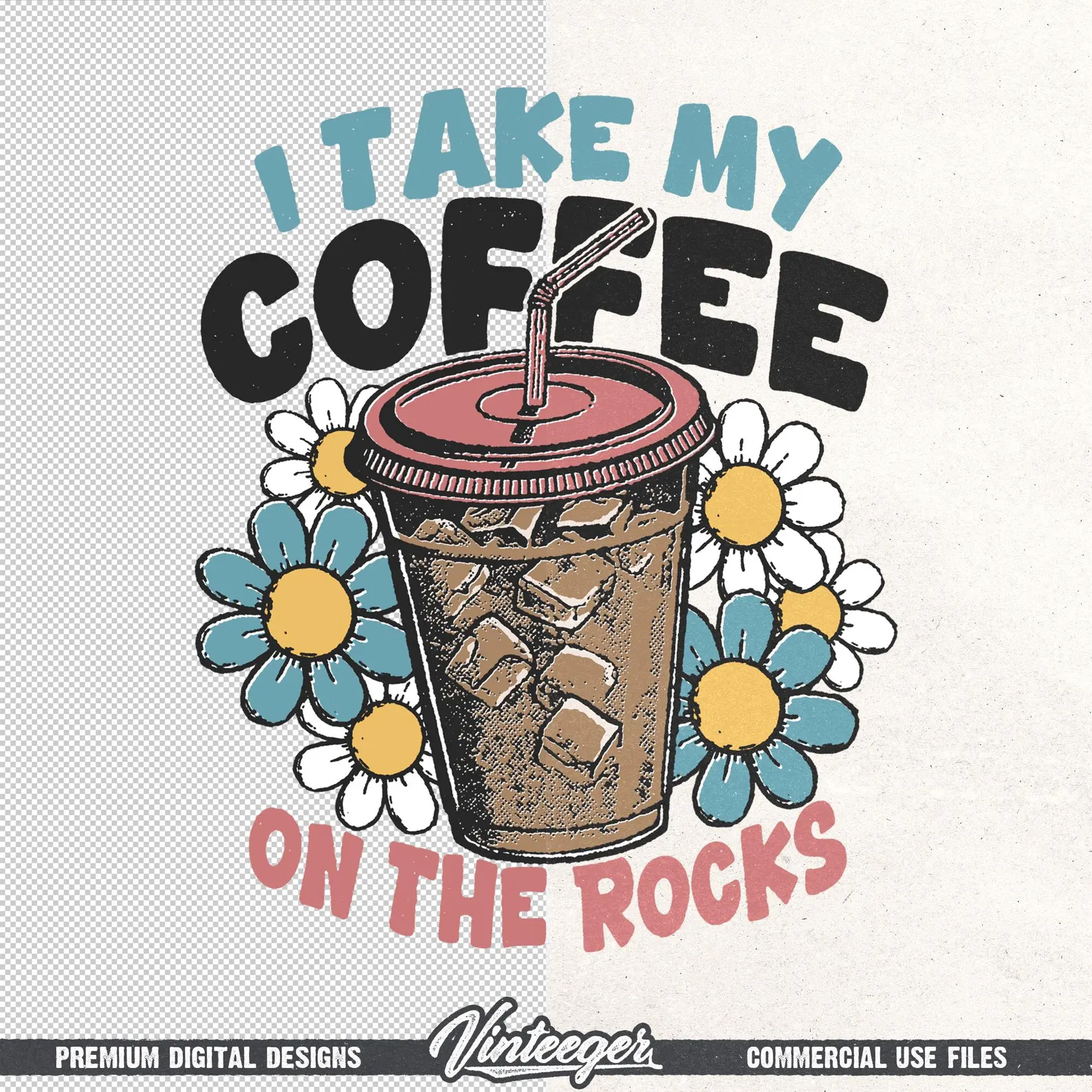 Iced coffee lover t-shirt graphic PNG – I take my coffee on the rocks – Coffee lover gift PNG – Summer sublimation design – Coffee cup print