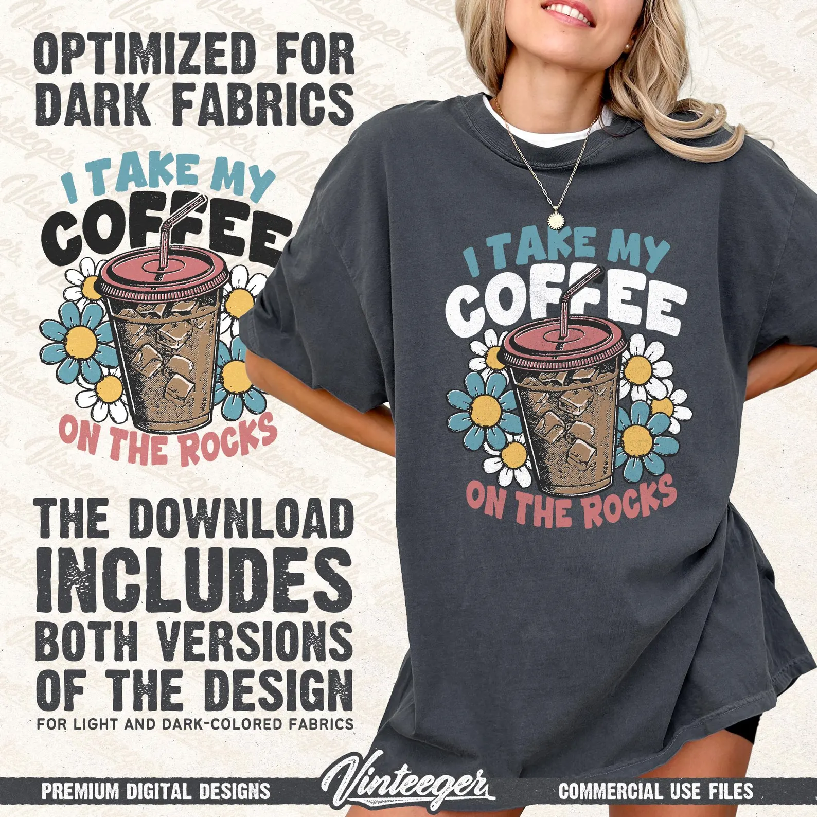 Be the first to review “Iced coffee lover t-shirt graphic PNG – I take my coffee on the rocks – Coffee lover gift PNG – Summer sublimation design – Coffee cup print”