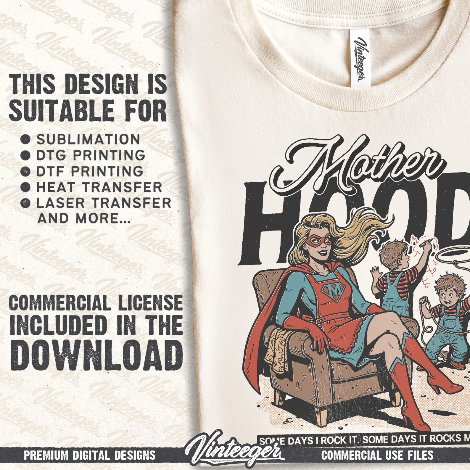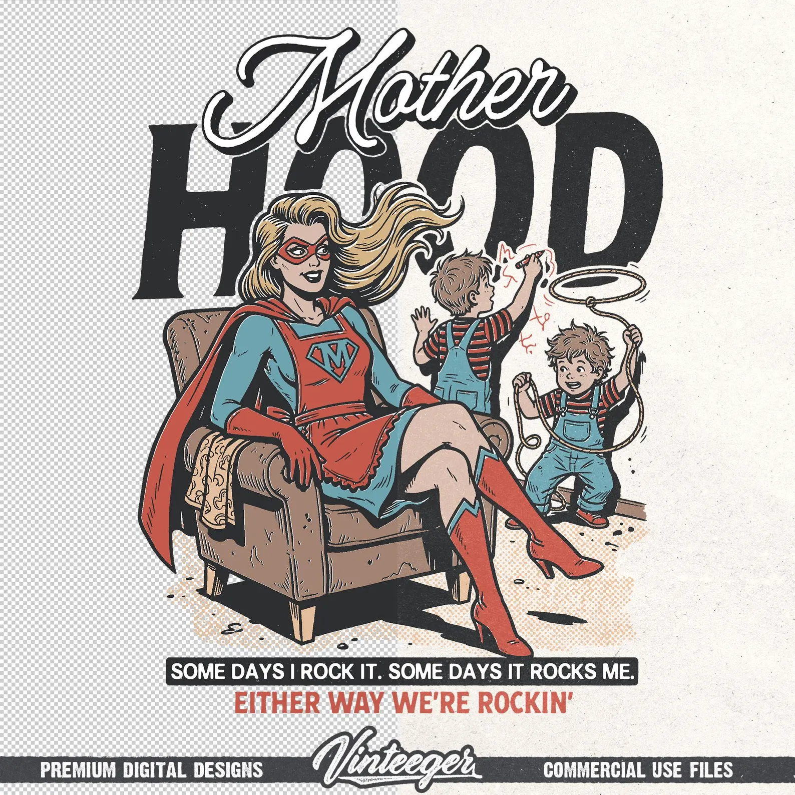 This retro digital design is perfect for bringing a funny touch to your creative projects. Whether you’re designing for your print-on-demand shop, crafting t-shirts, apparel, or exploring DTG printing, heat transfers, DTF, sublimation, and more, this versatile artwork has you covered. It’s ideal for stickers, t-shirts, posters, art prints, wall decor, tumblers and countless other physical products. Use this design to add some Super mom vibe to your next party, vacation, event or just for fun!